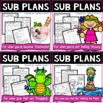 Emergency Sub Lesson Plans No Prep 3rd Grade Fun Theme Activity Packet Math ELA