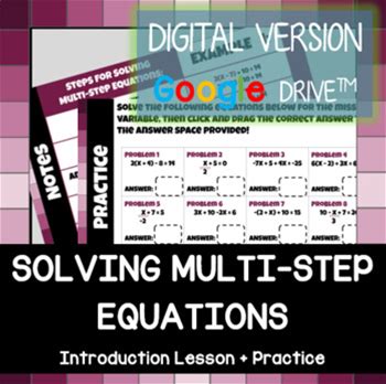 Solving Multi-Step Equations - DIGITAL Notes And Practice